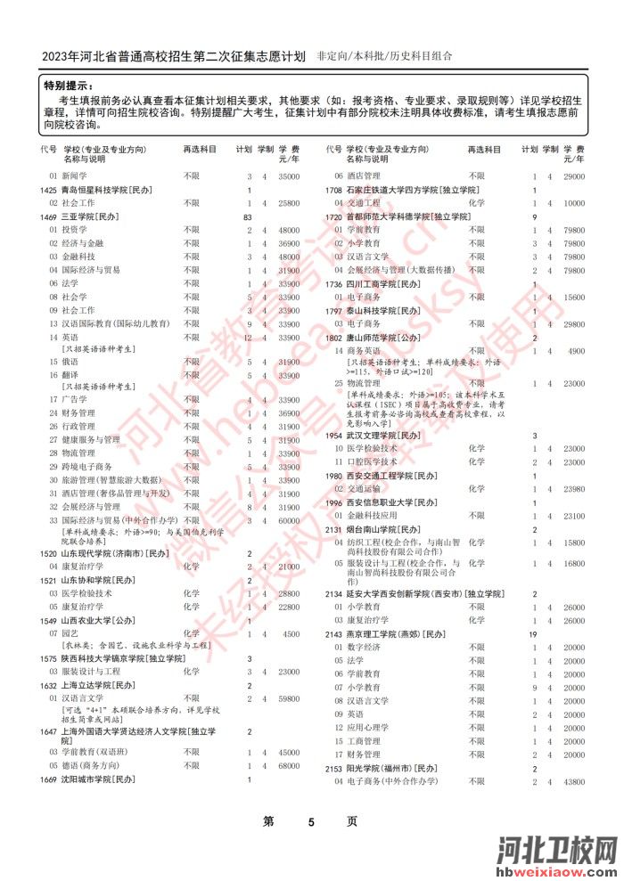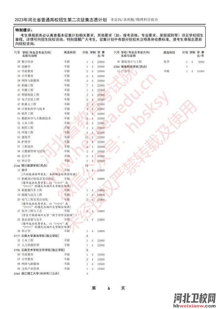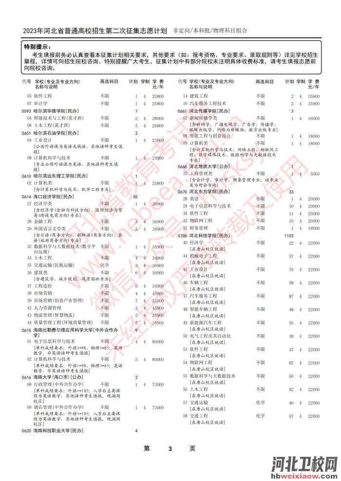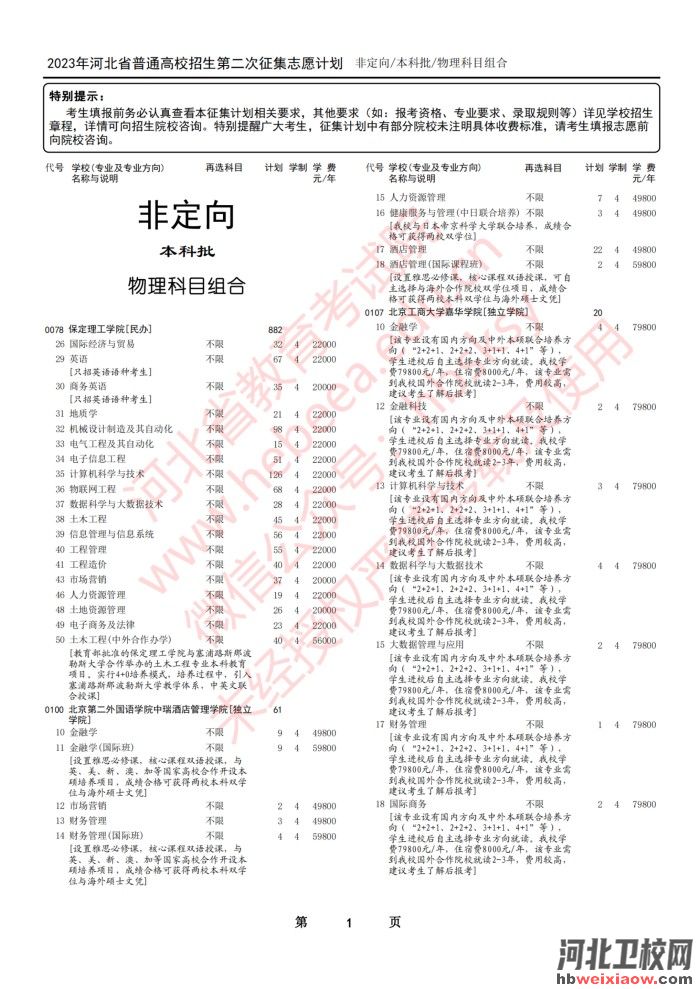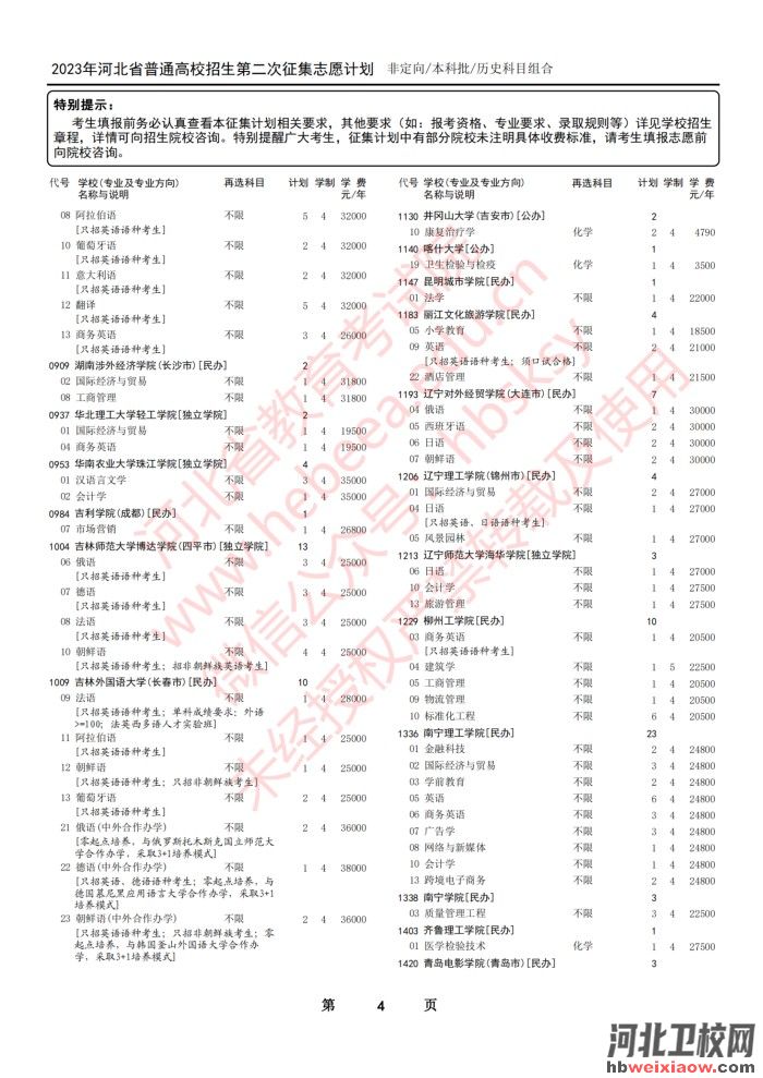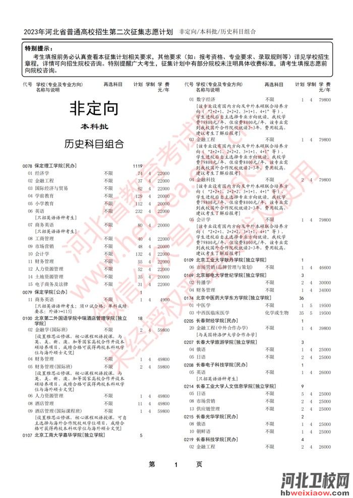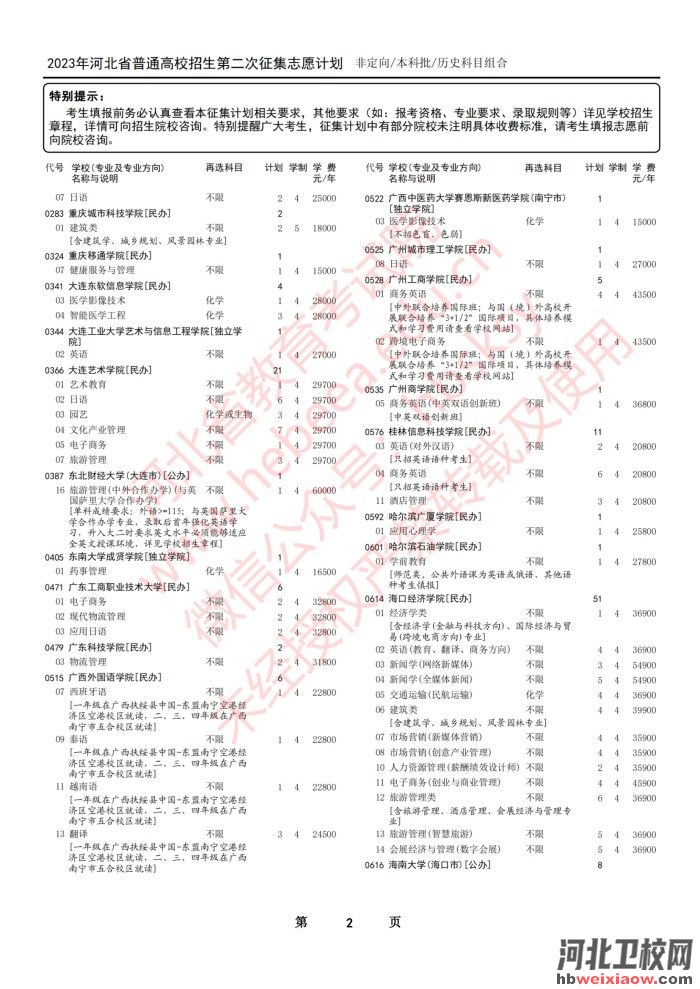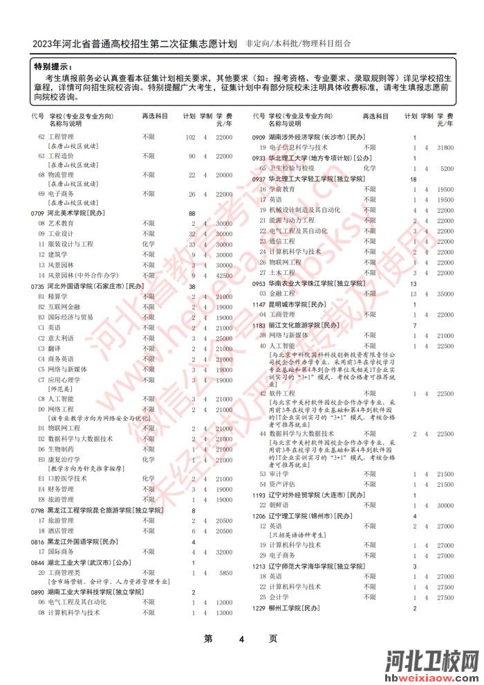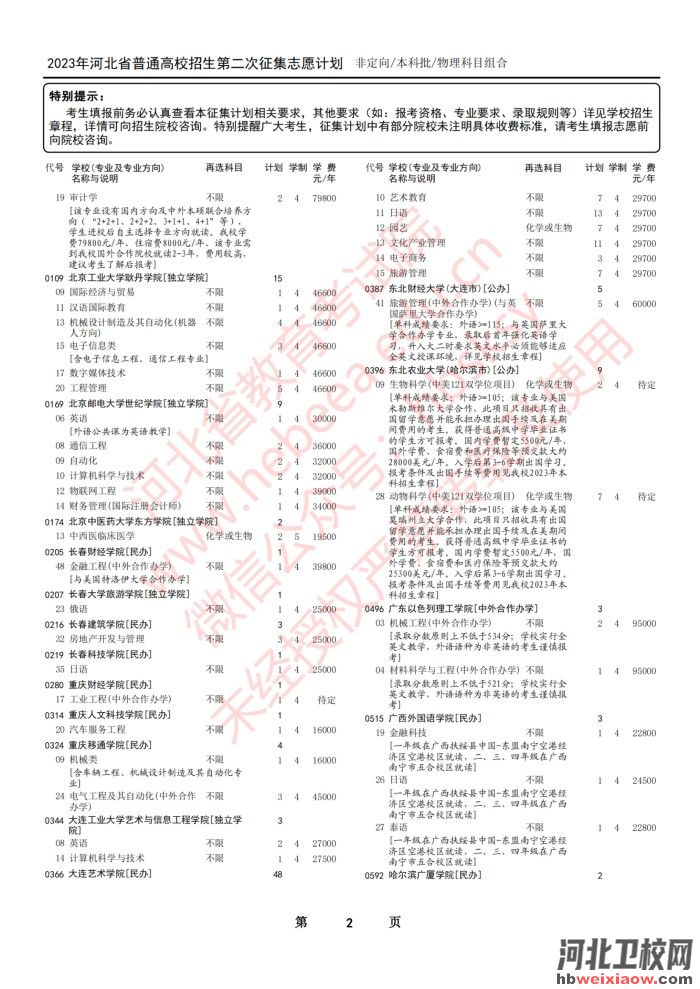 2023年河北省本科批第二次征集志愿計(jì)劃