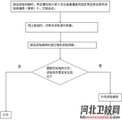 十二、三個(gè)專項(xiàng)計(jì)劃和免費(fèi)醫(yī)學(xué)定向計(jì)劃資格審核流程和報(bào)考條件是怎么規(guī)定的? 為便于高校招生各項(xiàng)工作的統(tǒng)籌推進(jìn),對(duì)三個(gè)專項(xiàng)計(jì)劃和免費(fèi)醫(yī)學(xué)定向計(jì)劃的資格審核,河北省采取集中預(yù)審核辦法。即考生須在報(bào)名期間提交相關(guān)申請(qǐng)(具體流程見下圖),市、縣兩級(jí)招生考試機(jī)構(gòu)按照2023年有關(guān)規(guī)定進(jìn)行預(yù)審核,逾期不再辦理審核手續(xù)。其中,免費(fèi)醫(yī)學(xué)??贫ㄏ蛴?jì)劃招生有關(guān)規(guī)定以當(dāng)年河北省公布的相關(guān)文件為準(zhǔn)。