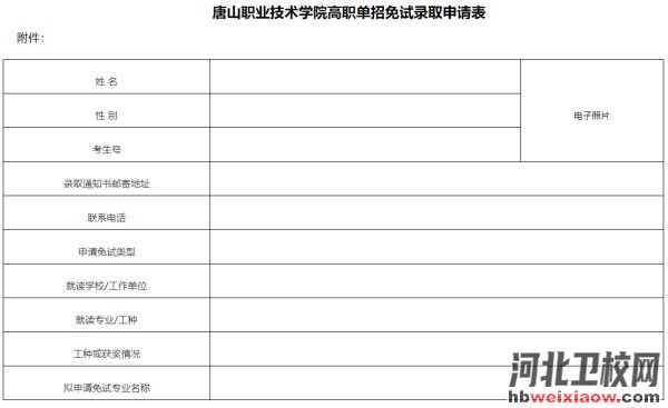 附件:唐山職業(yè)技術(shù)學(xué)院?jiǎn)握忻庠囦浫∩暾?qǐng)表